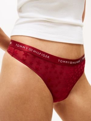Add a touch of branded style to underwear collections with this gift box trio of mesh flock-patterned thongs, featuring shiny logo waistbands.