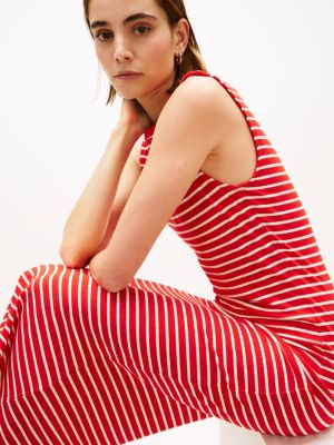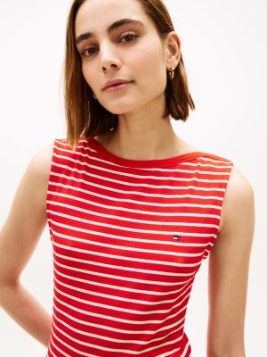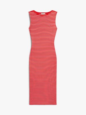 This ribbed midi bodycon dress with embroidered detailing features a flattering boat neck and sleeveless silhouette to enhance your daily look.