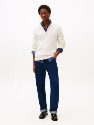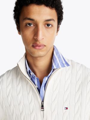 This combed cotton jumper combines a classic cable knit with a mock turtleneck and quarter-zip for a sophisticated silhouette.