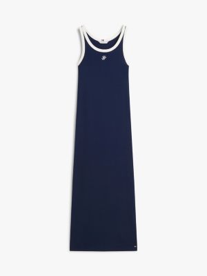 Evoke feminine elegance in this slim-fit dress, crafted from ribbed stretch cotton for a sleek silhouette and finished with script logo embroidery.