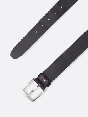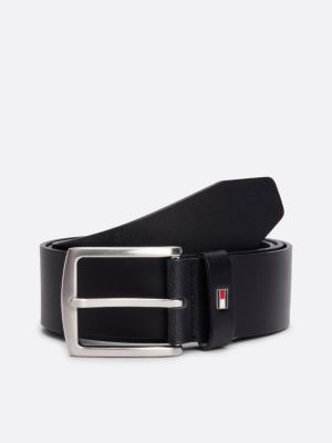 Ultra-smooth leather combines with a chunky brushed-metal buckle in this streamlined belt, featuring a Tommy Hilfiger flag on the loop.