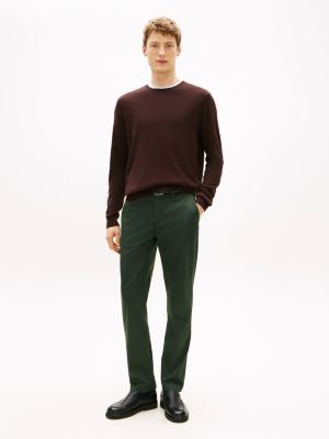 These chinos feature a structured fabric with the illusion of texture for a refined look, adorned with subtle signature detail.