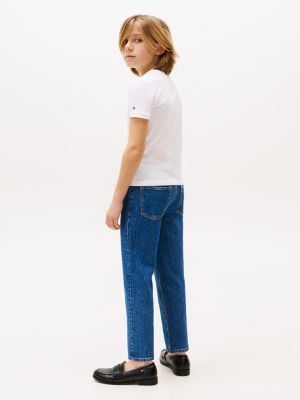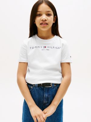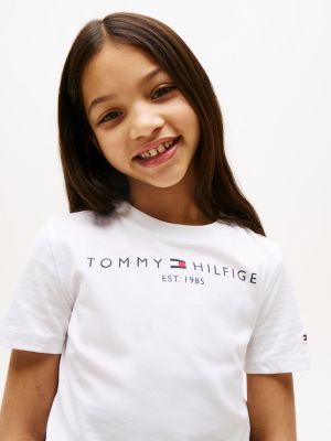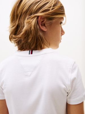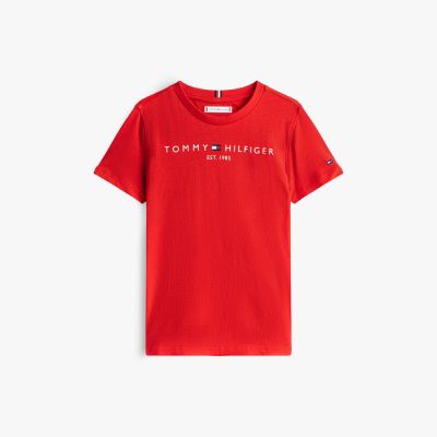 This essential tee is made from pure cotton jersey fabric for a soft handfeel, yet still gives plenty of movement for play and everyday activities. The crew neck makes it easy to pull on and pair with anything, from jeans to shorts, over lightweight vests and under chunky knitted jumpers. The standout logo across the chest lends a recognisable touch of premium style, ensuring every outfit feels elevated, even on casual days. There's a choice of four different-coloured tees for mixing and matching, each with a signature shade at its core. Tommy Hilfiger flag embroidery features on the sleeve for an authentic, branded finish.