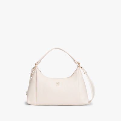 This shoulder bag showcases a striking, modern silhouette and offers the option to wear crossbody with the removable strap.