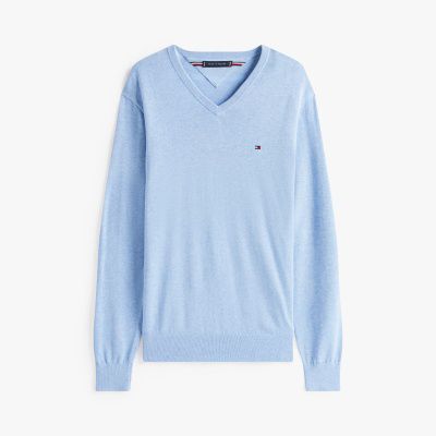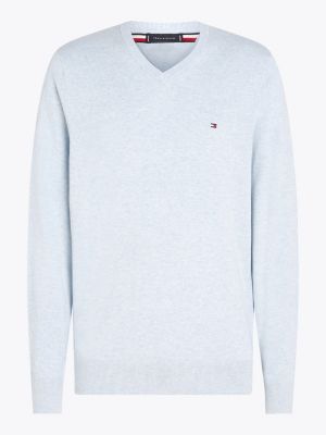Bring a touch of sophistication to your layering with this pure combed cotton V-neck jumper, complete with flag embroidery detailing.