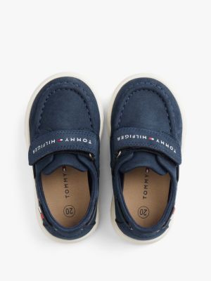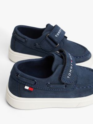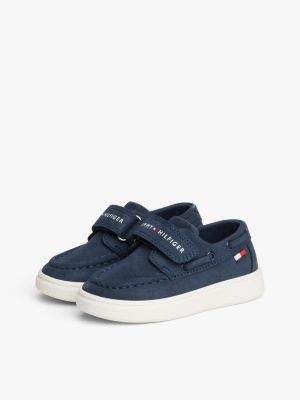 These nubuck-textured boat shoes have a modern look with an easy-to-fasten hook-and-loop strap across the top, alongside classic topstitched detail.