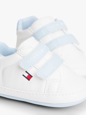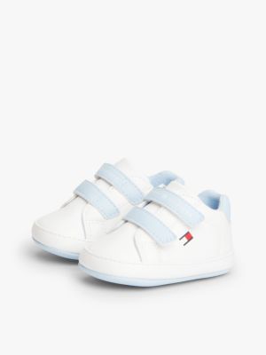 These low-top trainers are ready to accompany their first steps in style, with practical hook-and-loop straps and a signature flag.