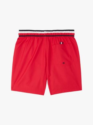These medium-length swim shorts are highlighted with a global stripe on the waistband for a splash of signature flair.