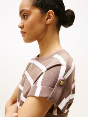 Turn-back cuffs with gold buttons and a Tommy Hilfiger metal flag on the hem give this pure cotton T-shirt signature flair.