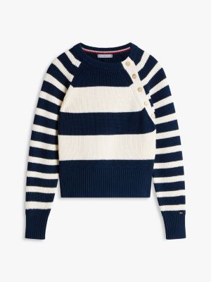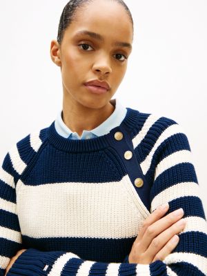 This cosy pure cotton jumper is elevated by branded gold-tone buttons on the shoulder and a refined metal flag on the sleeve.