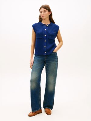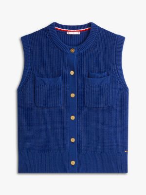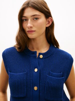 Achieve seamless day-to-evening style with this rib-knit vest, featuring gold-tone buttons and a double patch pocket on one side of the chest.