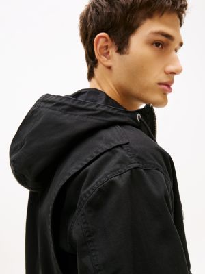 Create a refined look with this relaxed hooded jacket, crafted in a herringbone weave and featuring a hoody-inspired split kangaroo pocket.