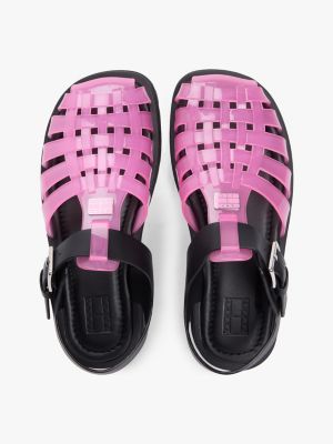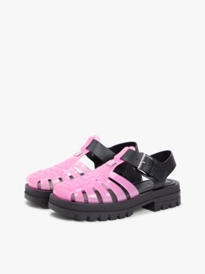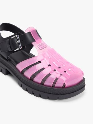 Update your warm-weather footwear collection with these jelly fisherman sandals, featuring a chunky cleated sole and plaque branding.