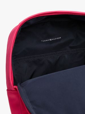This compact backpack with tonal flag embroidery has enough space for daily essentials and features an additional slip pocket inside.