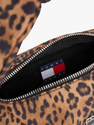 Unleash your wild side with this shoulder bag featuring a bold leopard print, padded strap and tonal branding.