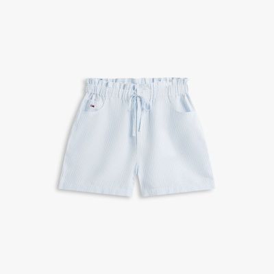 These five-pocket linen-blend shorts are ideal for warm-weather styling, with their airy silhouette and ruffling on the comfy drawstring waist.
