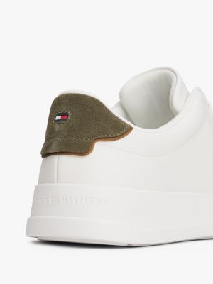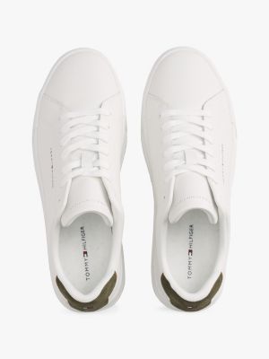 Go for a streamlined look in these coated leather trainers, featuring a classic court silhouette that's elevated by the contrast heel panel.