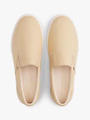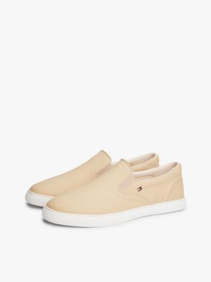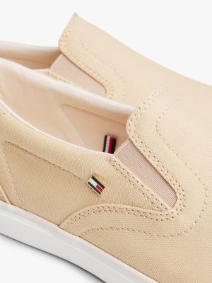 These low-profile trainers with pure cotton canvas uppers featuring subtle enamel flag detail are ready to simply slip on, for added convenience.