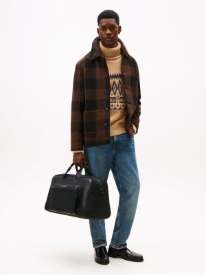 Smooth and textured panels bring an elevated look to this capacious duffel bag with a large front pocket for travel essentials.