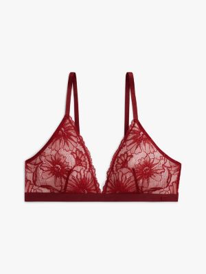 This romantic triangle bra adds a feminine touch to your look with its pretty lace cups, delicate spaghetti straps and metallic shimmer.