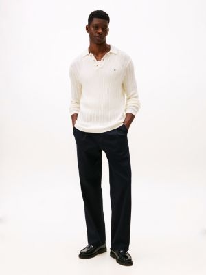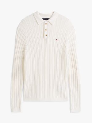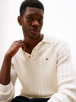 Featuring an all-over mixed knit design for subtle structure, this pure mercerised cotton jumper takes inspiration from the classic polo.
