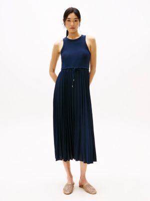 This pleated midi dress is a graceful choice for daytime occasions, with its flattering fit-and-flare silhouette and elegant sleeveless design.
