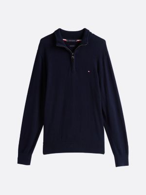 This quarter-zip jumper featuring subtle flag embroidery is crafted from Pima cotton with a touch of cashmere for added luxury and warmth.