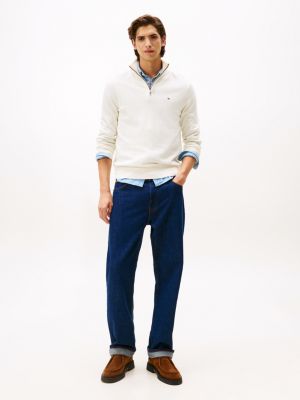This quarter-zip jumper featuring subtle flag embroidery is crafted from Pima cotton with a touch of cashmere for added luxury and warmth.