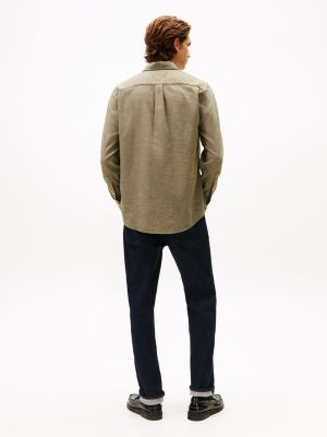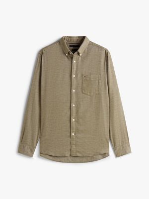 This pure cotton shirt has a brushed flannel texture and is finished with a classic button-down collar for easy styling.