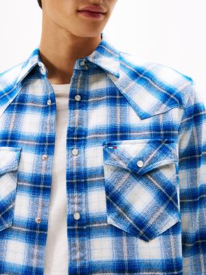 This pure cotton flannel shirt features angled yoke detailing and envelope pockets that give it a Western-inspired look.