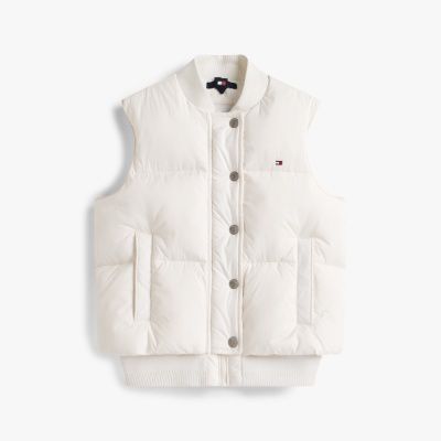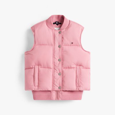This gilet is made with down in a puffer design, making it a handy extra layer for the walk to school.