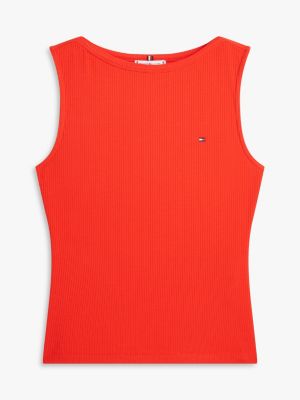 The flattering boat neck and slim fit of this ribbed tank top make it a sophisticated take on an everyday layering staple.