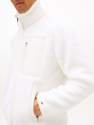Add a layer of warmth with this teddy fleece jacket, featuring tonal mixed texture pockets and trims for a premium finish.