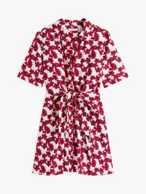 Create a striking ensemble in this mini shirt dress, featuring a textured finish and a self-tie on the front of the waist.