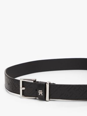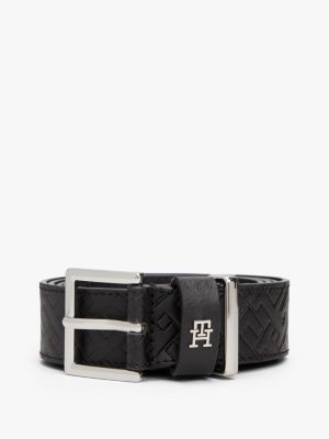 Enhance semi-formal looks with this refined leather belt, featuring an all-over TH monogram topstitch design and coordinating metal plaque on the keeper.