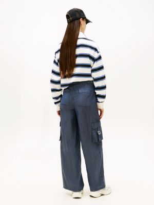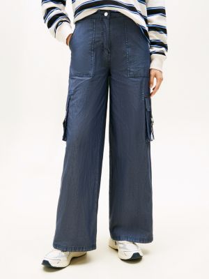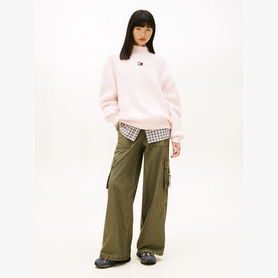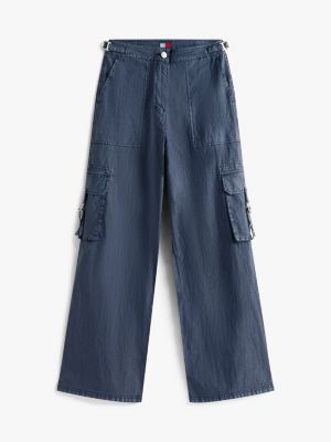 These twill cargo trousers offer relaxed vibes with their wide-leg design, while multiple pockets and waist tabs create a distinct utility look.