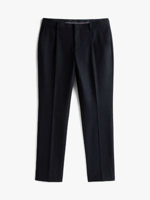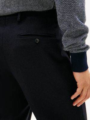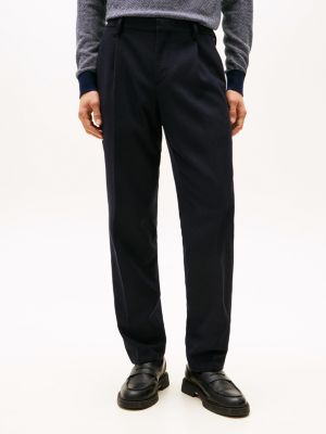 Crisp pressed creases and a tactile wool-blend composition give these versatile trousers a refined look for smart occasions.