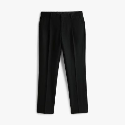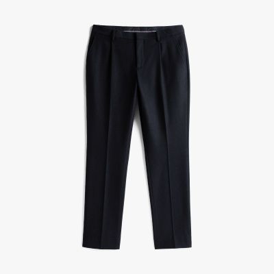 Crisp pressed creases and a tactile wool-blend composition give these versatile trousers a refined look for smart occasions.